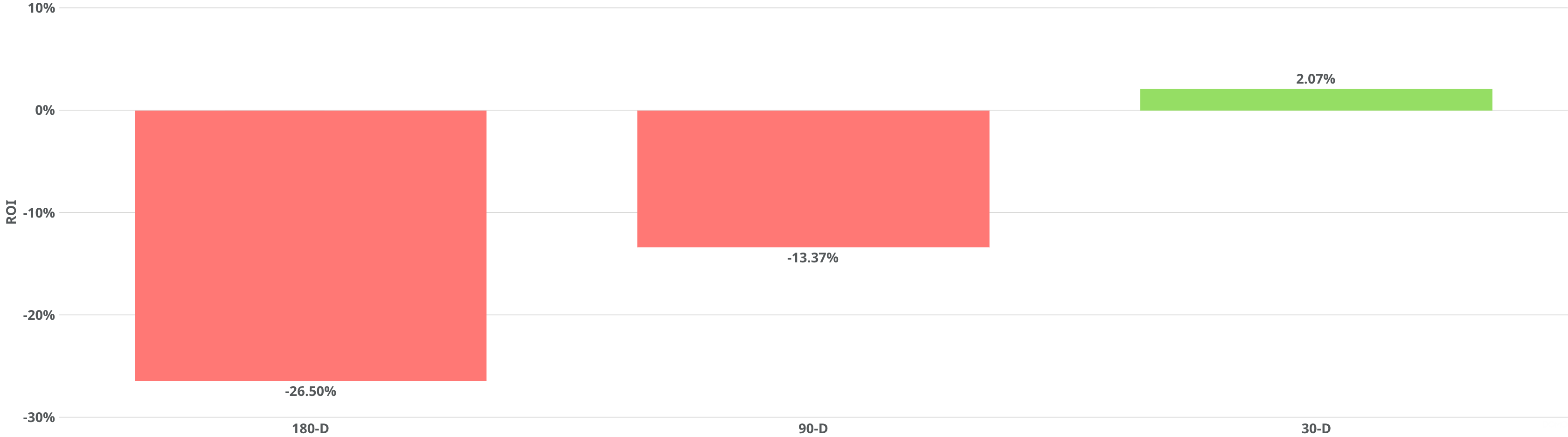 The graph below displays Cohere's ROI over the past 90, 60, and 30 days, computed as of March 30, 2026.