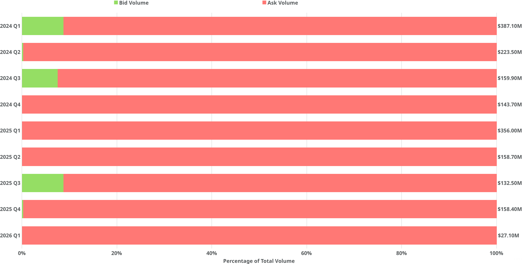 - Low Bid-Ask Volume: Bid-ask volume reached $27.10 million in 2026 Q1, the lowest level observed across recent quarters
