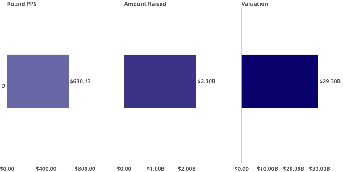 Price (USD) estimated based on secondary market activity observed by PM Insights. Valuation is estimated based on said price and share count from state filings and/or news in the public domain. Note that share count in calculations may change as new filing documents are obtained.