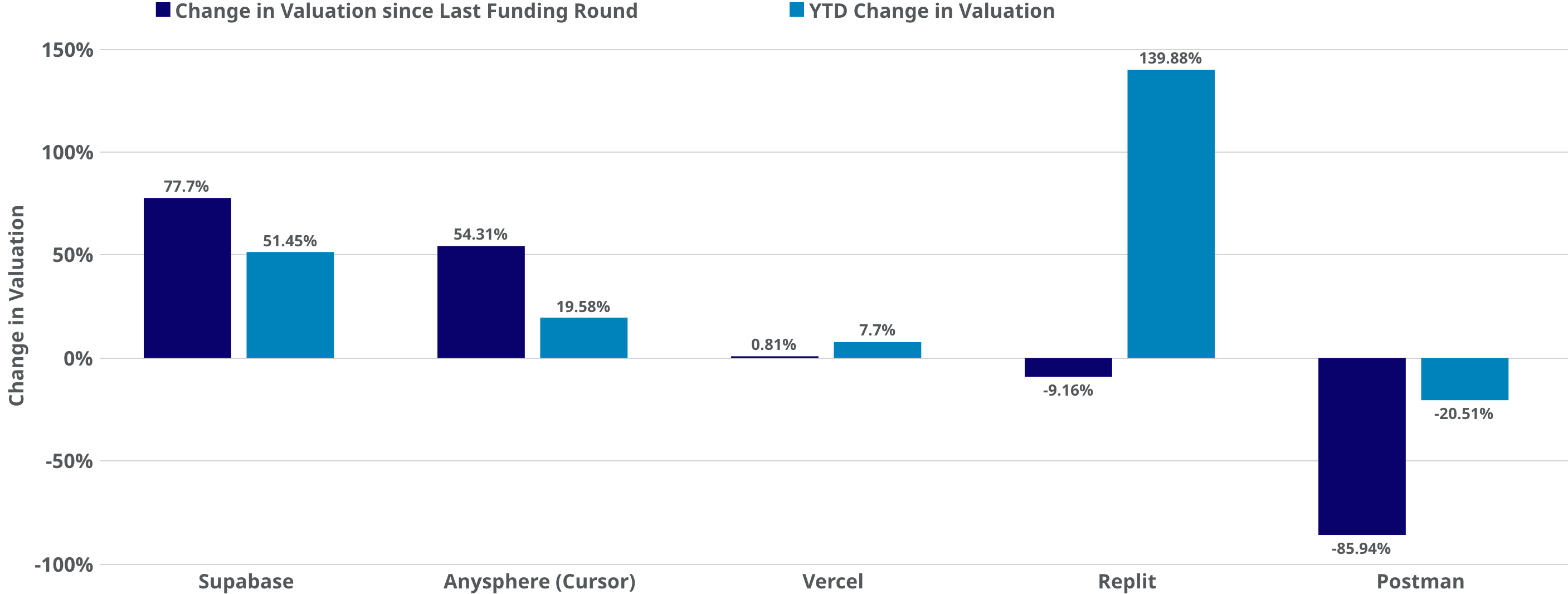 - Largest decline: Postman's composite price was down -22.74%