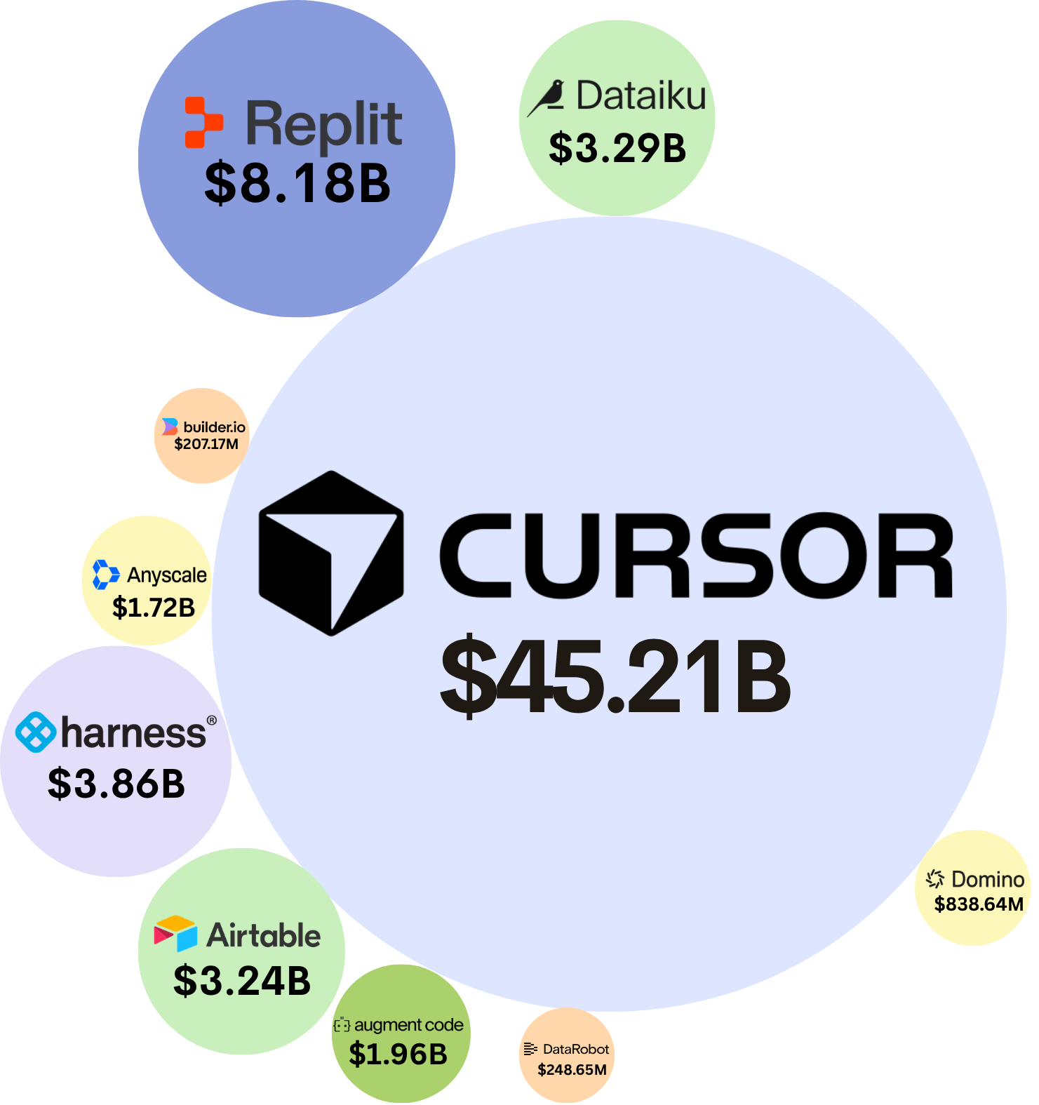 - Valuation Trend: Anysphere is reportedly seeking to raise capital at a $50 billion valuation (~1.7x its $29.3 billion Series D valuation in October 2025). Its strategic partnership with SpaceX further underscores strong demand for AI-powered developer tools
