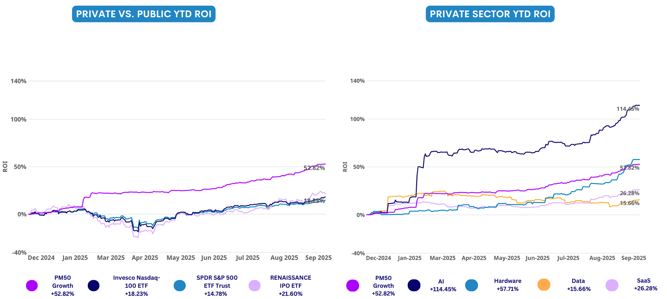 The PM50 Growth tracks the performance of the 50 most active private names observed in the secondary market. It is an equal-weighted index, rebalanced on a monthly basis.
