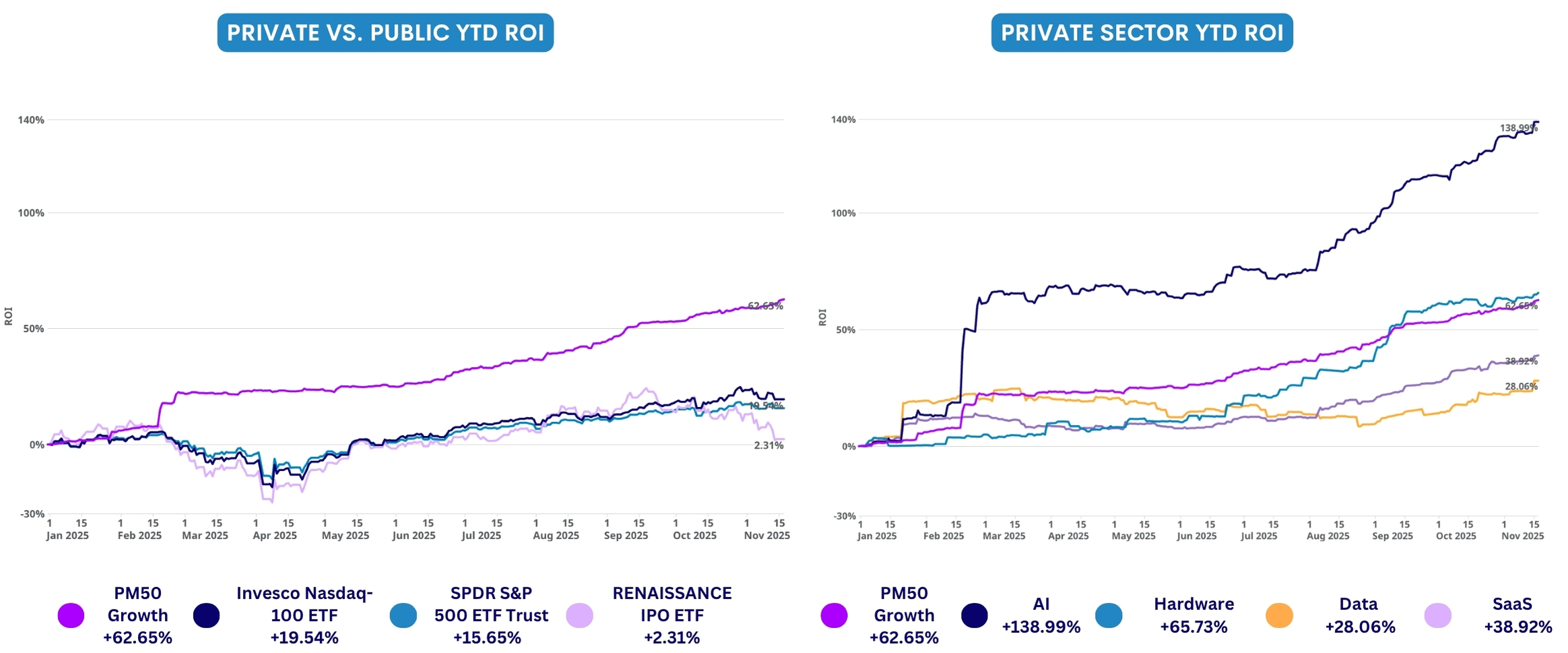 The PM50 Growth tracks the performance of the 50 most active private names observed in the secondary market. It is an equal-weighted index, rebalanced on a monthly basis.